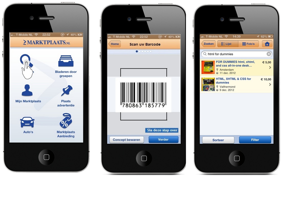 We zien dat al 25% van het bezoek op Marktplaats via een mobiel device komt. En dat getal is hard aan het stijgen. Voor ons is het dus van groot belang om hier een goede User Experience te bieden. Hoe zou je de unieke eigenschappen van een mobiel device kunnen inzetten om de Marktplaats ervaring te verbeteren? Denk hierbij bijvoorbeeld aan het gebruik van een camera bij het plaatsen van een advertentie.