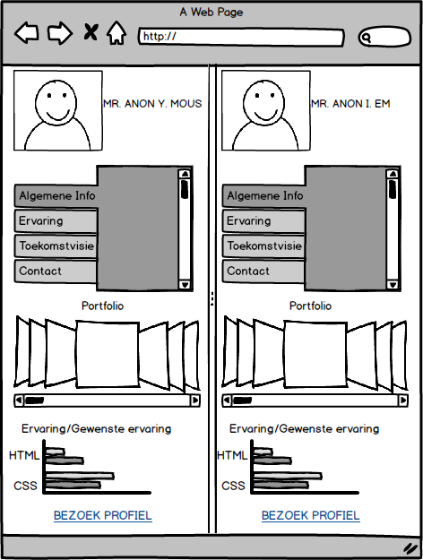 De emotie die ik probeer op te roepen is rust. Een omgeving waarin je rustig kan rondkijken en klikken om je mogelijkheden te vinden en je horizon te verbreden. Door simpel alles duidelijk, gestructureerd en naast elkaar te zetten kan er goed vergeleken en gekeken worden om zo tot de best mogelijke uitslag te komen.