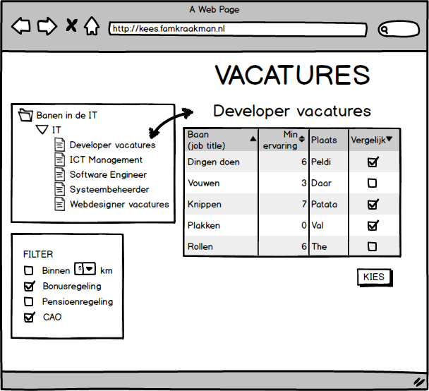 Vacatures worden makkelijk te browsen weergegeven.Zo kan een werkzoekende rustig door de pagina scrollen en interessante vacatures aanvinken om ze later in één keer met elkaar te vergelijken.