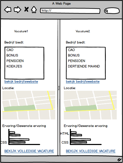 Vacatures worden makkelijk te browsen weergegeven.Zo kan een werkzoekende rustig door de pagina scrollen en interessante vacatures aanvinken om ze later in één keer met elkaar te vergelijken.